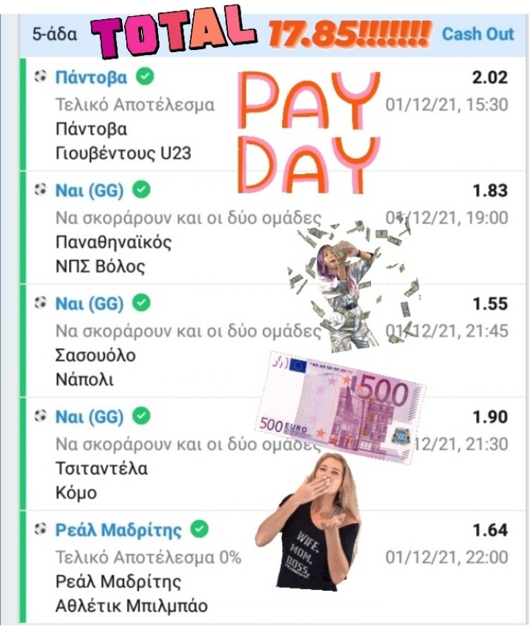 Όσων αφορά τώρα την χθεσινή σούπερ επιτυχία προσωπικά κασαρα στο 83 του τελευταίου παιχνιδιού που περίμενα στον άσσο της Ρεαλ δηλαδή γιατί ποτέ δεν ξέρεις μπορεί από μία στημένη φάση να γίνει το 1-1 αλλά είμαι ικανοποιημένος από το πόσο γιατί μου επιστράφηκε το 90% του συνολικού κέρδους.