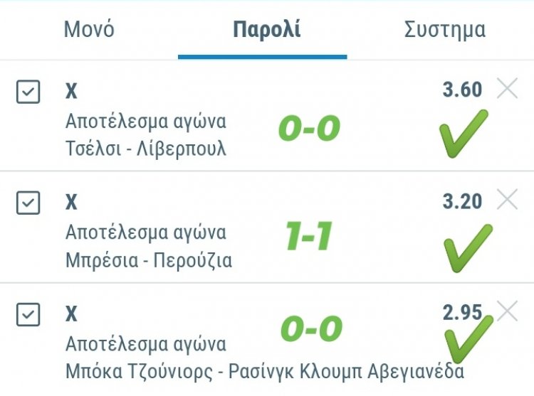 Καλημέρα, μετά τις 2 ισοπαλίες προ 2 ημερών που μας χάρισαν ένα πολύ σημαντικό ποσό έρχεται ένα νέο ανεπανάληπτο ταμείο με 3 στις 3 καρφωτες ισοπαλίες by makis vogdopoulos σε τρελή απόδοση.