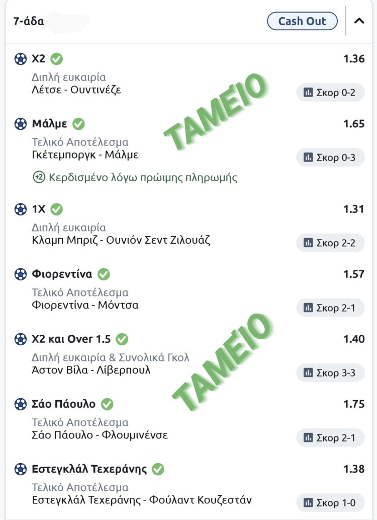 Ο χθεσινος τίτλος έλεγε ότι η στοιχηματικη πρόταση μυρίζει ταμείο, μύρισε λοιπόν ταμείο καθώς πέρασαν και τά 7 σημεία by makisvogdopoulos σέ τρομερή συνολική απόδοση