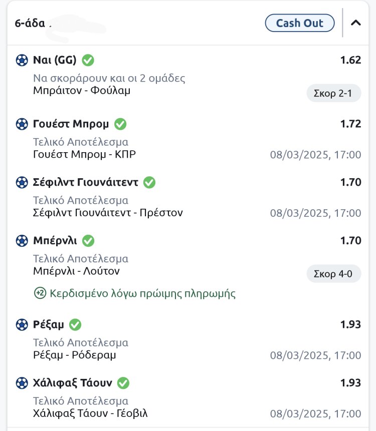 Δεν αλλάξε κάτι μέχρι το τέλος των παιχνιδιών αλλά κάποια φορά το cash out πρέπει να το χρησιμοποιούμε.