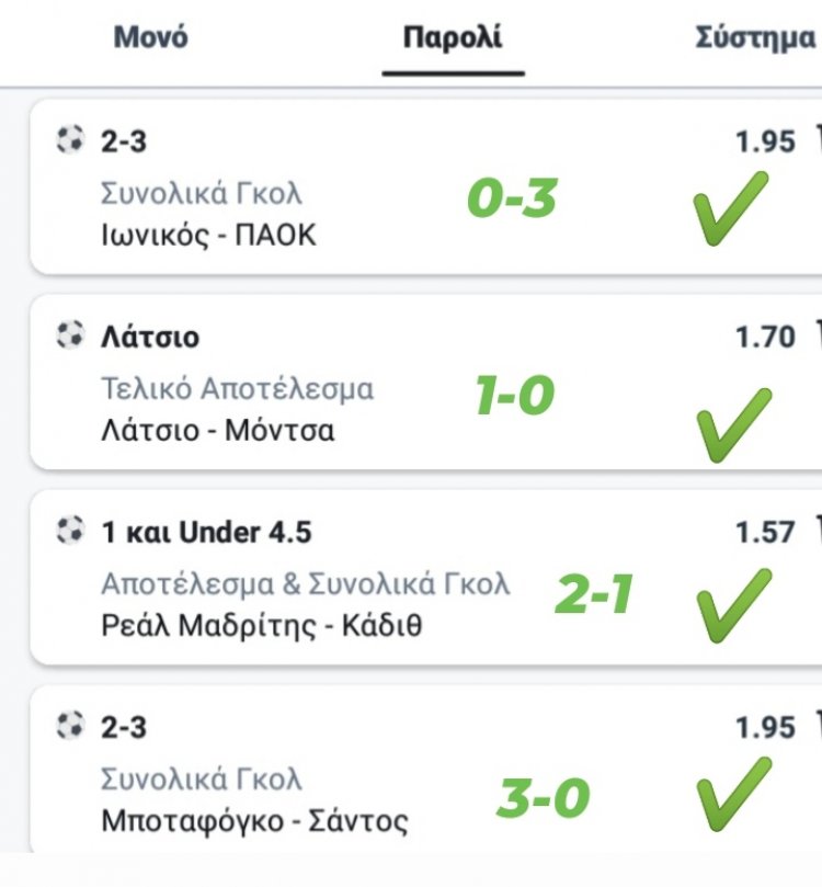 Μας πλήρωσε η 4αδα της Πέμπτης σε συνολική απόδοση 10.26!!!!!!!!!!!!!!!